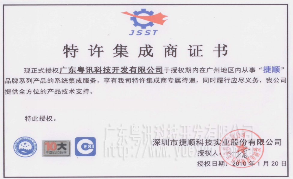 捷順集成商證書(shū)