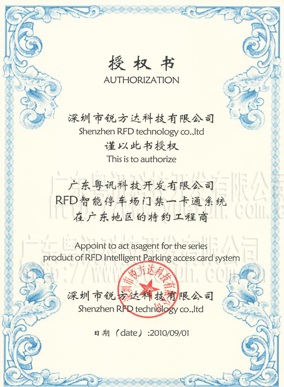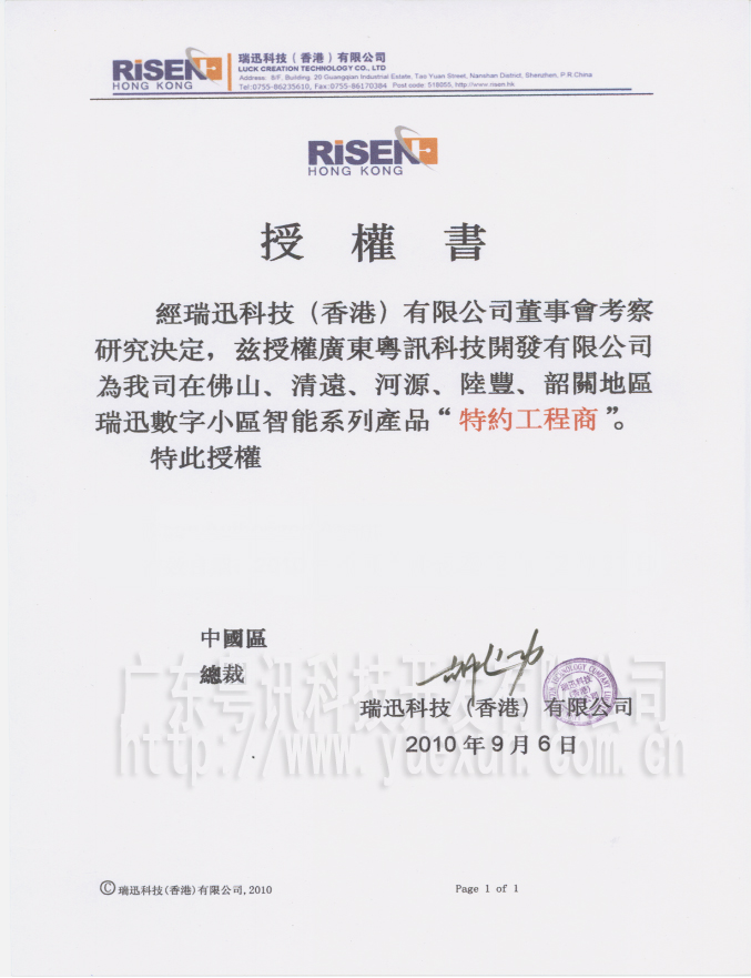 瑞訊科技授權(quán)書(shū)