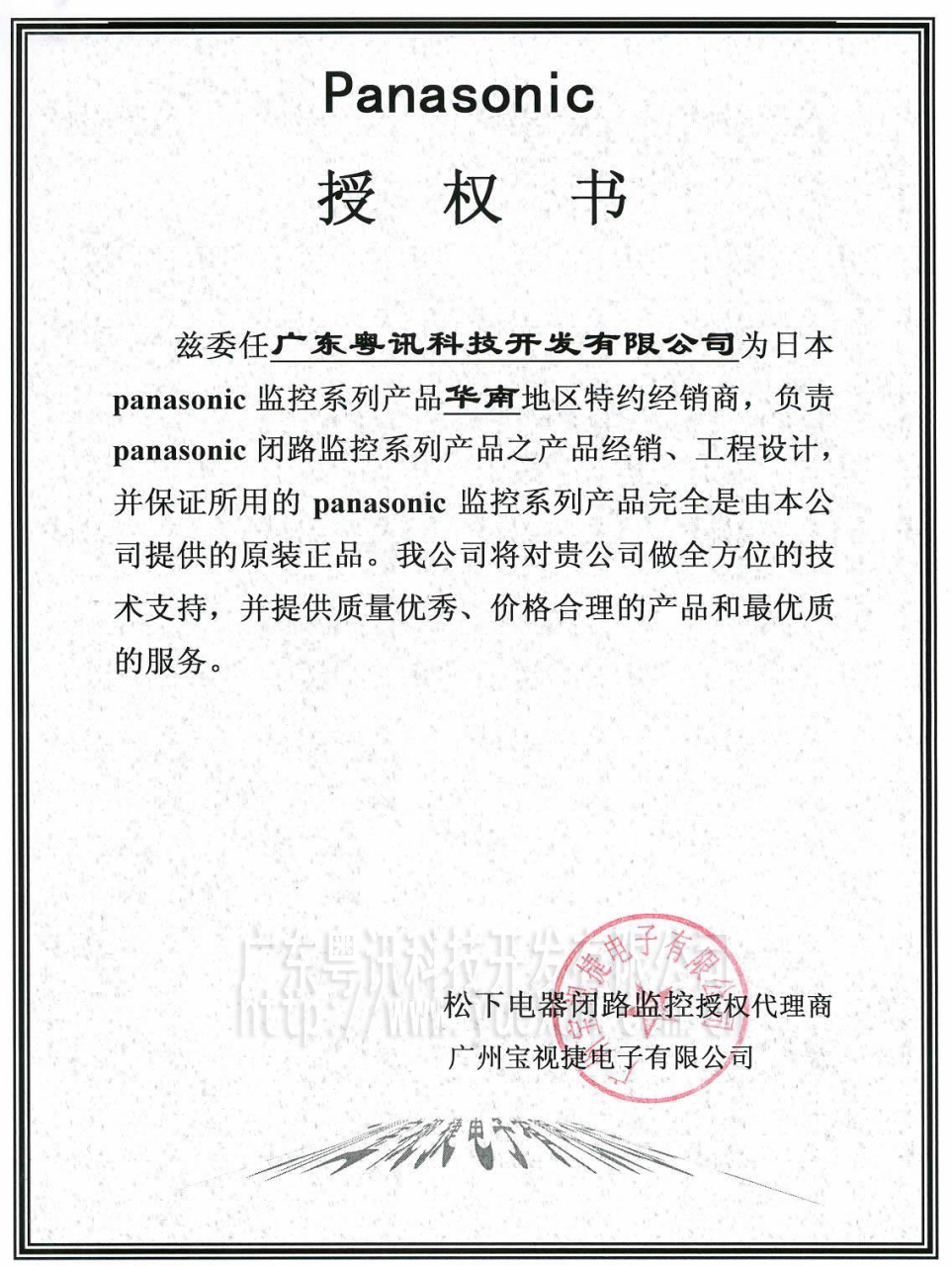 松下電子授權(quán)書(shū)