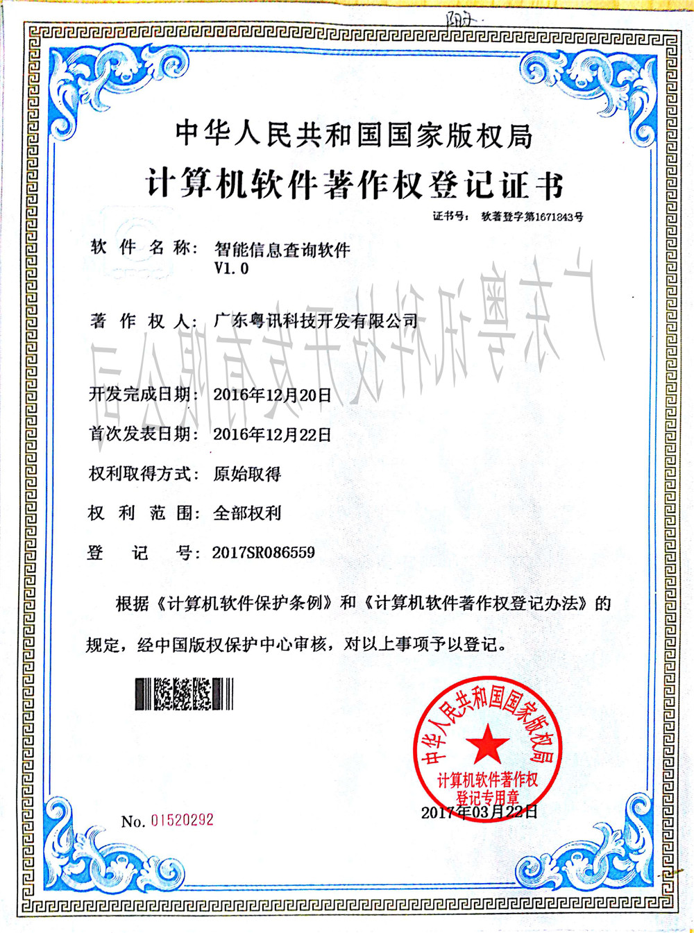 計(jì)算軟件著作權(quán)登記證書(六)
