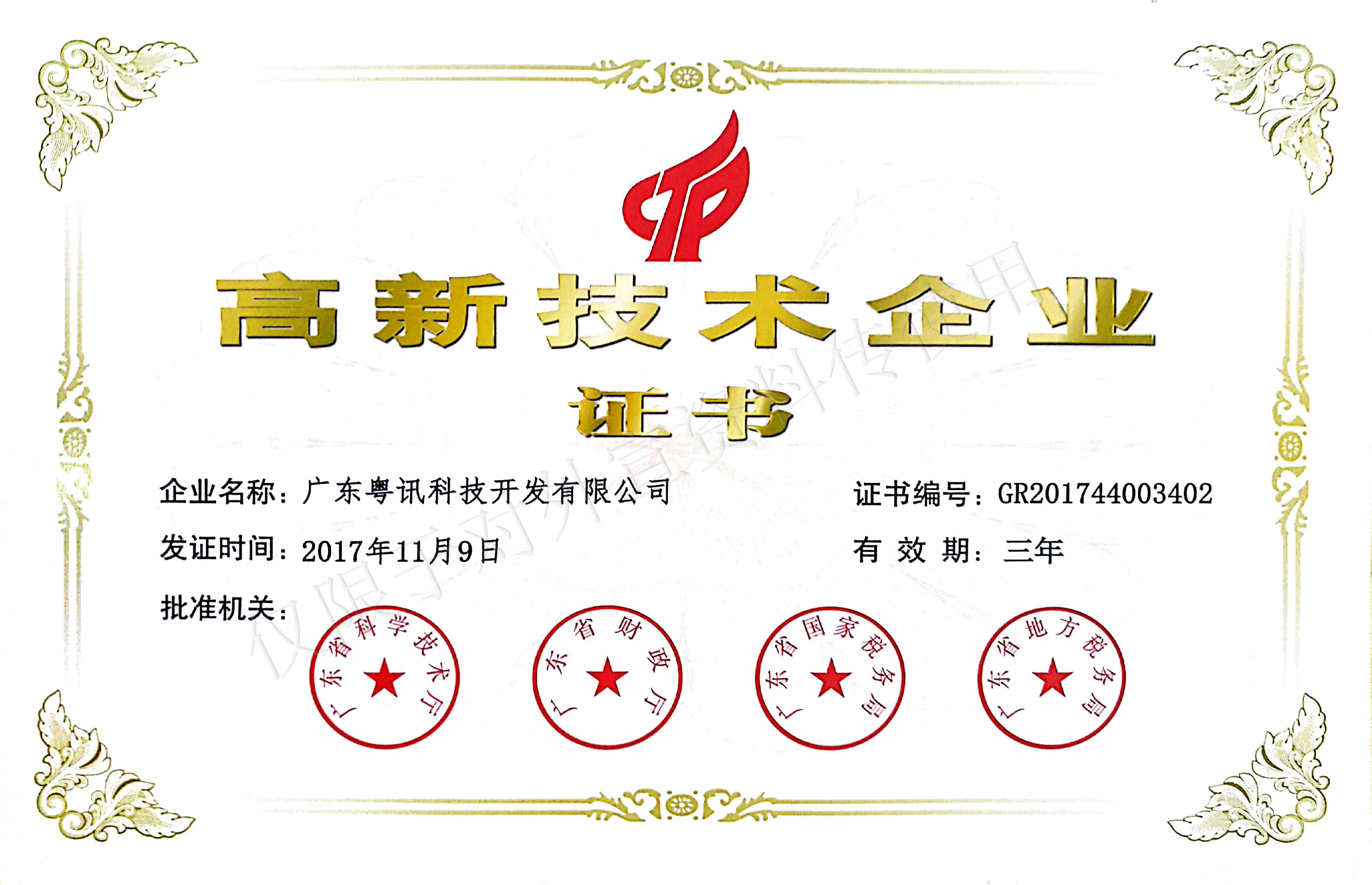 高新技術(shù)企業(yè)證書